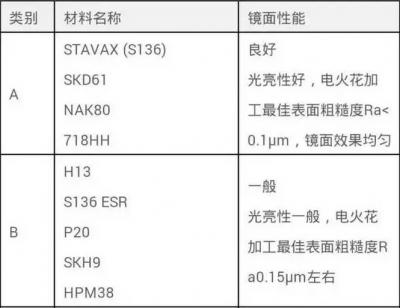通常來(lái)講,大多數(shù)塑膠模具鋼能滿足鏡面電火花加工的要求,而大多數(shù)冷作模具鋼則不能滿足。