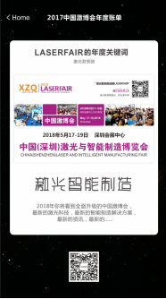2017年悄然過去,支付寶的年度賬單火爆了朋友圈,這份賬單細數(shù)著你的點滴,也搭載著2018年的新希望伴您前行。2018中國(深圳)激光與智能制造博覽會(簡稱中國激博會)再起航,與您相約2018年5月17-19 日。