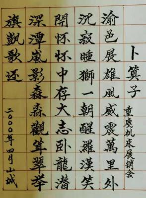 附:楊光平先生于2000年4月在重慶立嘉展上,作詞《卜算子》的原稿。20年前的行業(yè)現(xiàn)狀躍然紙上,清晰了模糊的記憶。