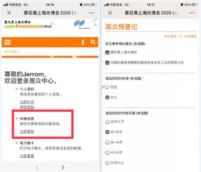 第十五屆慕尼黑上海光博會實名預登記系統(tǒng)新升級上線,接下來讓鐳Sir帶著大家體驗一下我們的觀展預登記新流程吧:
