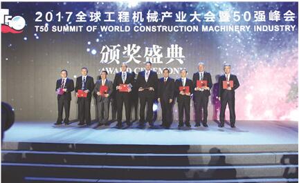 2017全球工程機(jī)械制造商50強(qiáng)發(fā)布,徐工作為50強(qiáng)中唯一進(jìn)入10強(qiáng)的中國企業(yè),王民董事長代表徐工接受頒獎。