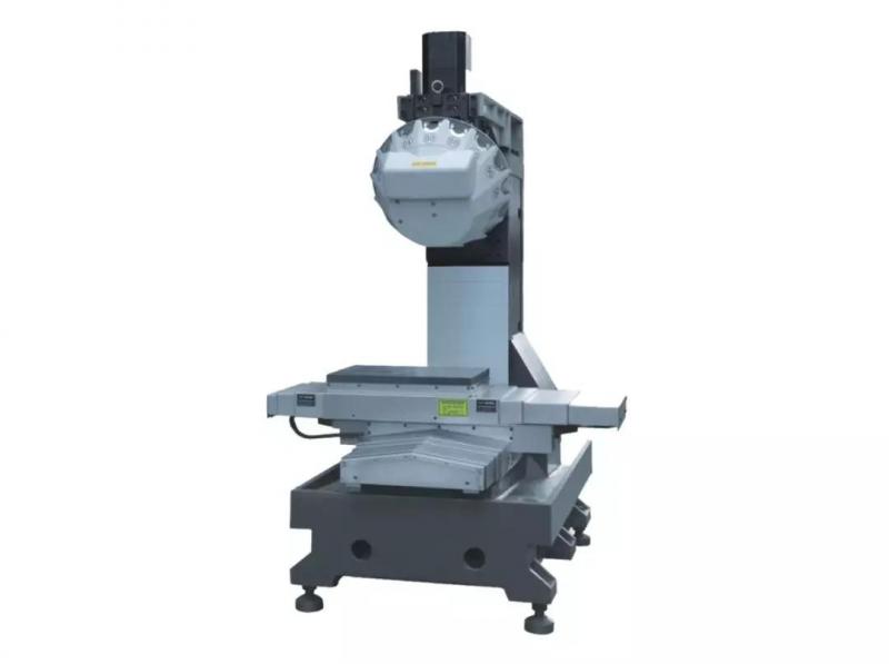 與立式加工中心相比較,臥式加工中心結(jié)構(gòu)復(fù)雜,占地面積大,價(jià)格也較高,而且臥式加工中心在加工時(shí)不便觀察,零件裝夾和測量時(shí)不方便,但加工時(shí)排屑容易,對(duì)加工有利。 1、固定立柱型 1)工作臺(tái)十字運(yùn)動(dòng),工作臺(tái)作X、Z向運(yùn)動(dòng),主軸箱作Y向運(yùn)動(dòng),主軸箱在立柱上有正掛、側(cè)掛兩種形式。適用于中型復(fù)雜零件的鏜、銑等多工序加工。 2)主軸箱十字運(yùn)動(dòng),主軸箱作X、Z向運(yùn)動(dòng),工作臺(tái)作Y向運(yùn)動(dòng)。適用于中小型零件的鏜、銑等多工序加工。 3)主軸箱側(cè)掛與立柱,主軸箱作Y、Z向運(yùn)動(dòng),這種布局形式與刨臺(tái)型臥式銑鏜床類似,工作臺(tái)作X向運(yùn)動(dòng)。適用于中型零件鏜、銑等多工序加工。