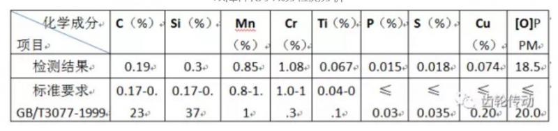 通過對故障件的材料數(shù)據(jù)及標(biāo)準(zhǔn)要求對比分析,故障件材料化學(xué)成分滿足《GB/T3077-1999》中20CrMnTi的元素要求,因此材料的化學(xué)成分合格。