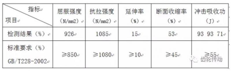 故障件批次材料的機械性能(抗拉強度、屈服強度、伸長率、斷面收縮率、沖擊吸收功)均滿足GB/T228-2002要求。因此材料的機械性能也合格。