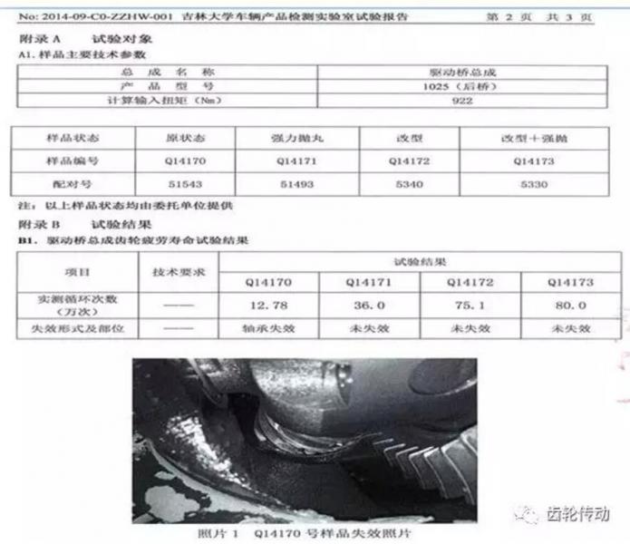 4、對改進后的齒輪副作臺架疲勞試驗進行驗證