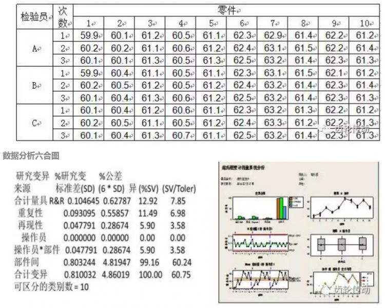 由以上數(shù)據(jù)可以看出:該測量系統(tǒng)可區(qū)分的類別數(shù)=10,說明該測量系統(tǒng)的分辨率ndc=10>5。說明該測量系統(tǒng)分辨能力充分滿足要求。