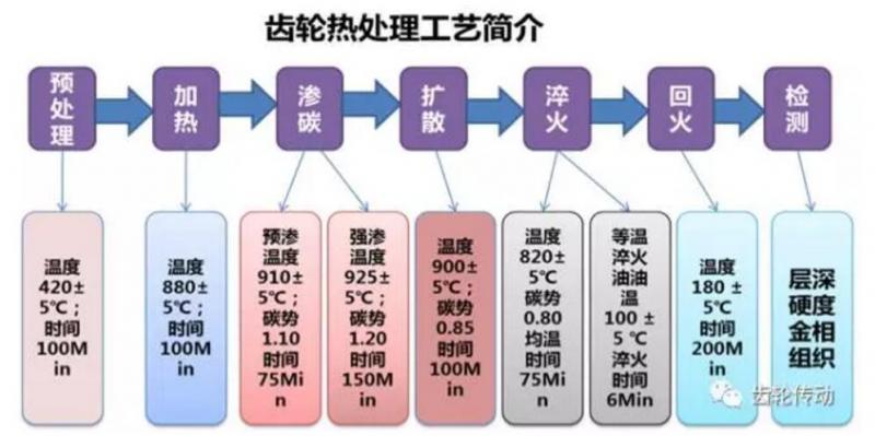 齒輪在熱處理時易產(chǎn)生的缺陷滲碳層、表面硬度、心部硬度及金相組織不均勻或者達不到工藝技術(shù)要求,如果工藝調(diào)整或執(zhí)行不當(dāng),此時還有可能能產(chǎn)生淬火裂紋。