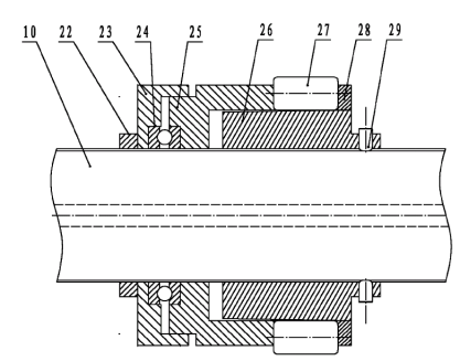25、滾子套 26、承壓體27、滾子 28滾壓蓋 29、限位銷