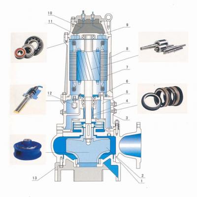100WQ潛水排污電泵的主要部件是葉輪、泵體和底座潛水電機。泵和電機是同一個軸,因為泵位于整個污水泵的底部,所以它可以限制地面上的污水量。葉輪設(shè)計為雙流道,大大提高了污水的流量,能有效地通過直徑為泵直徑50%的固體顆粒。